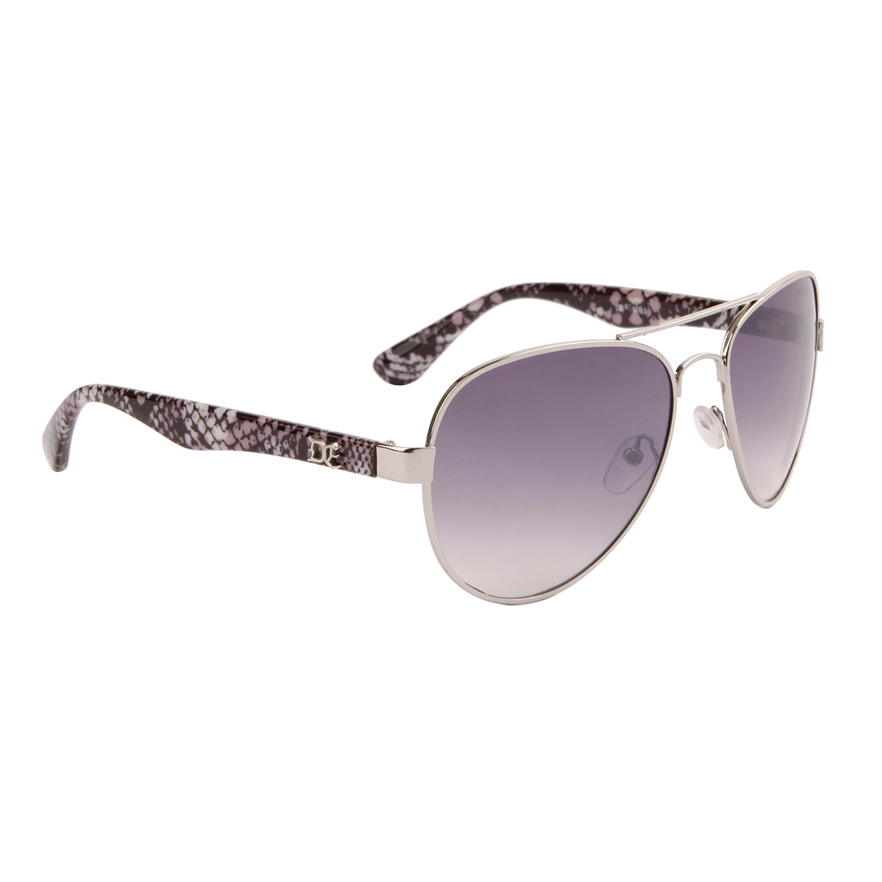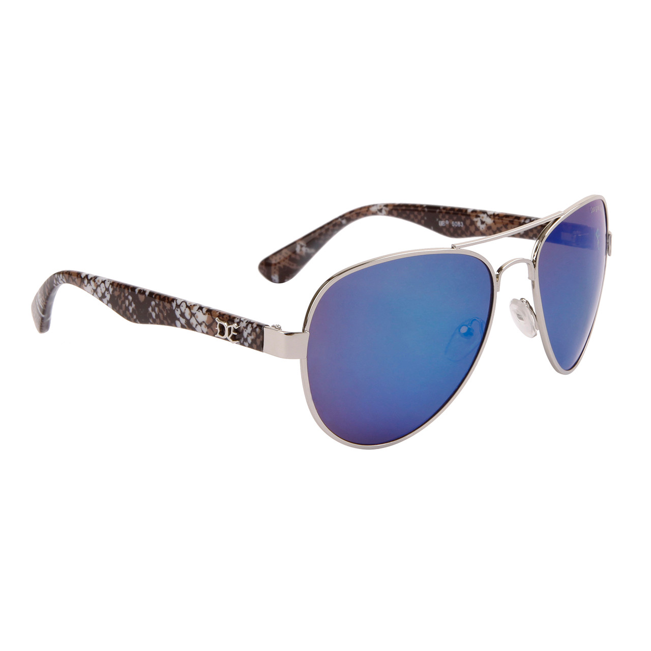 Stylish snake skin fashion aviators! This DE™ model has a metal DE™ logo on each arm in an Old English lettering style, and comes with blue flash mirror, smoke and amber gradient tinted lenses.