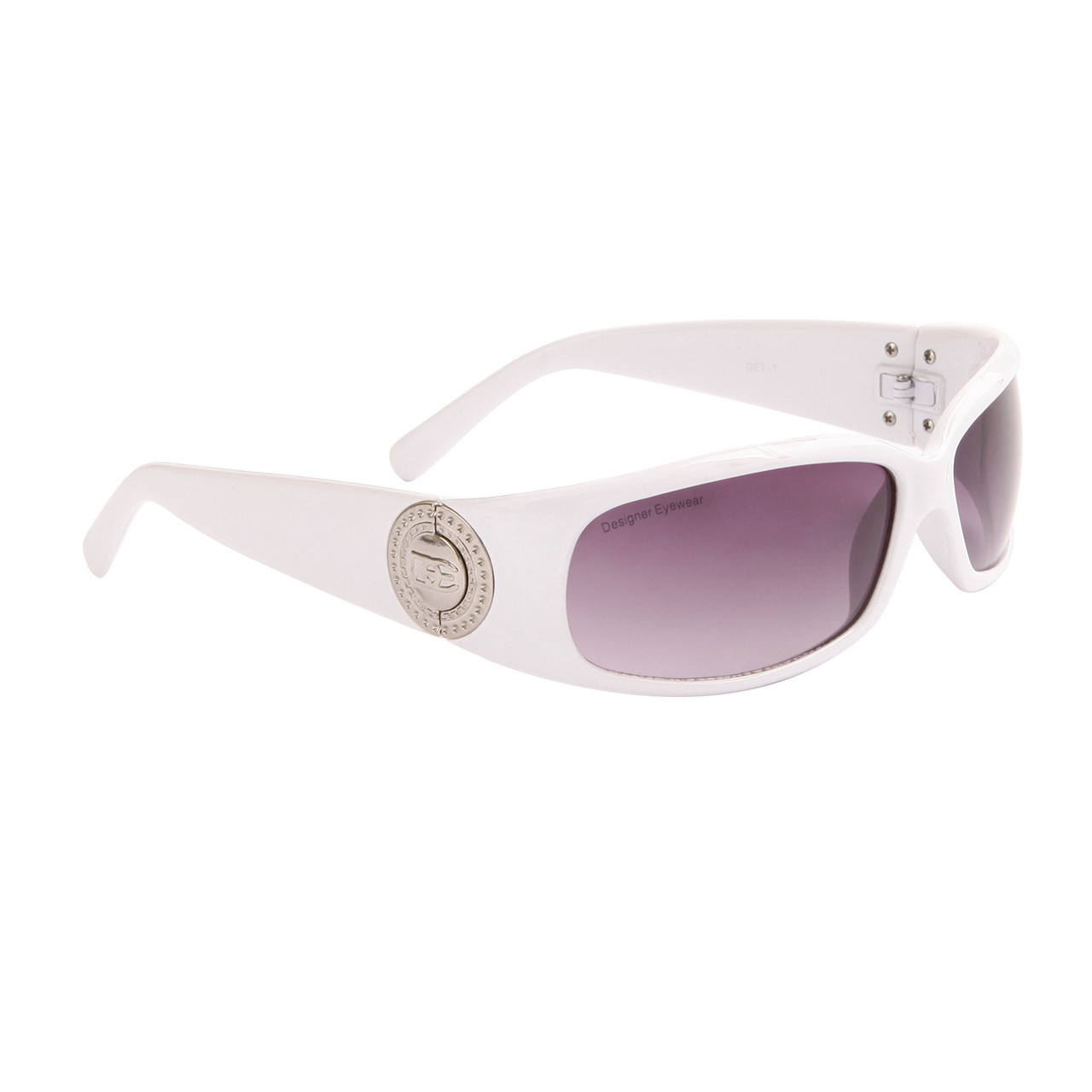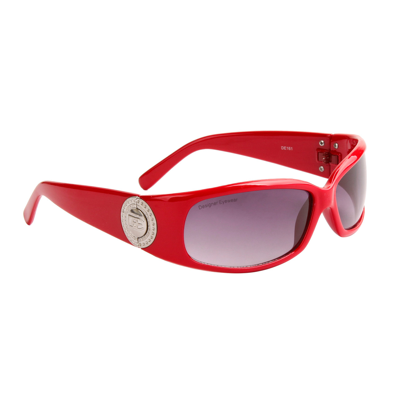 Another attractive designer style of wholesale sunglasses for women by DE™ Designer Eyewear. This model includes Red, White and Gloss Black frame colors; all in a slim design with large metal logos at each end piece.
