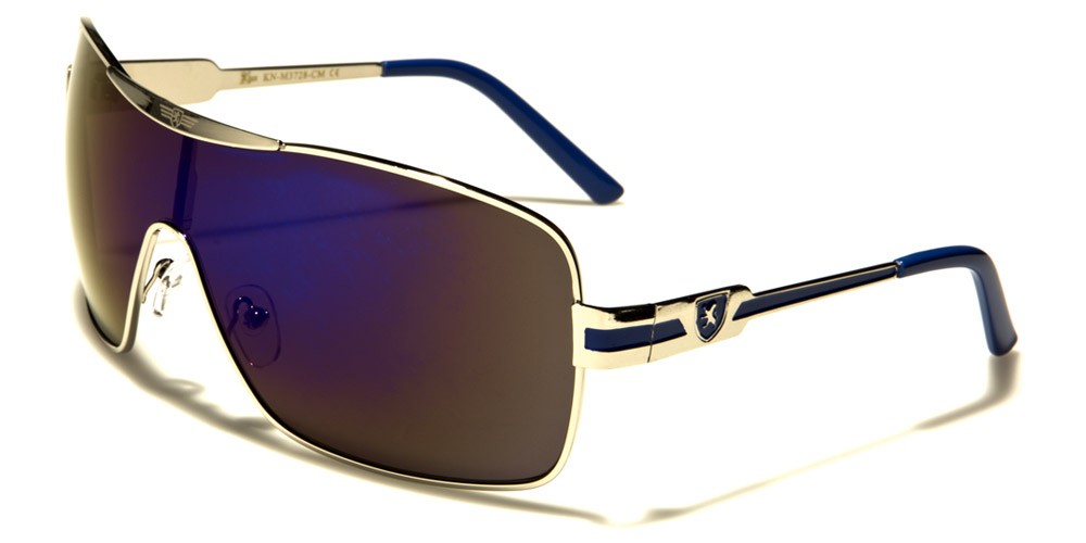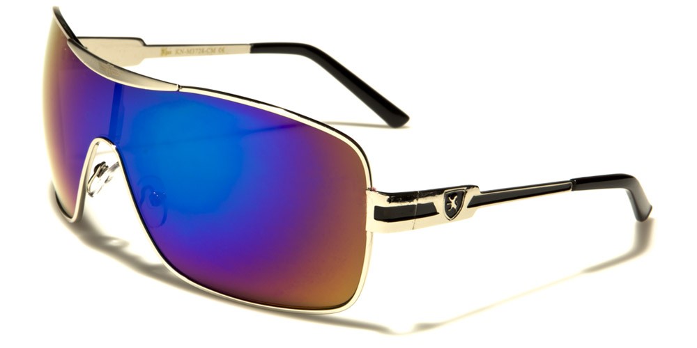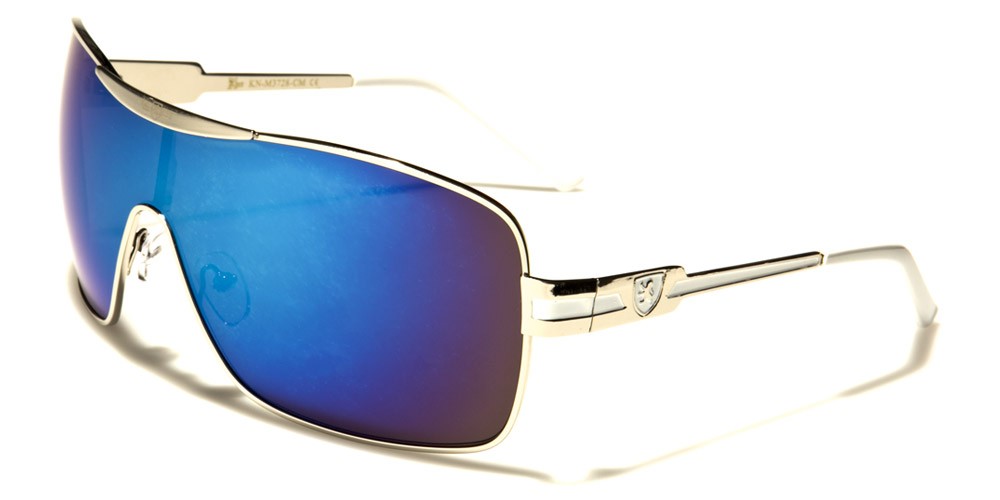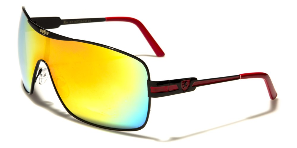 These Khan shield sunglasses feature another refreshing take on the well loved and classic aviators. These unisex sunglasses feature a single lens with a metal frame and a pair of transparent and moveable nose pads. The rims come in black, gold and silver. The UV400 protective mirrored lenses come in revo orange, revo yellow, revo green, revo blue and revo purple. The two-toned metal arms sport the Khan logo. The plastic earpieces come in red, black, yellow, blue and white, matching the color stripes on the arms. Check out the rest of our quality sunglasses from Khan.