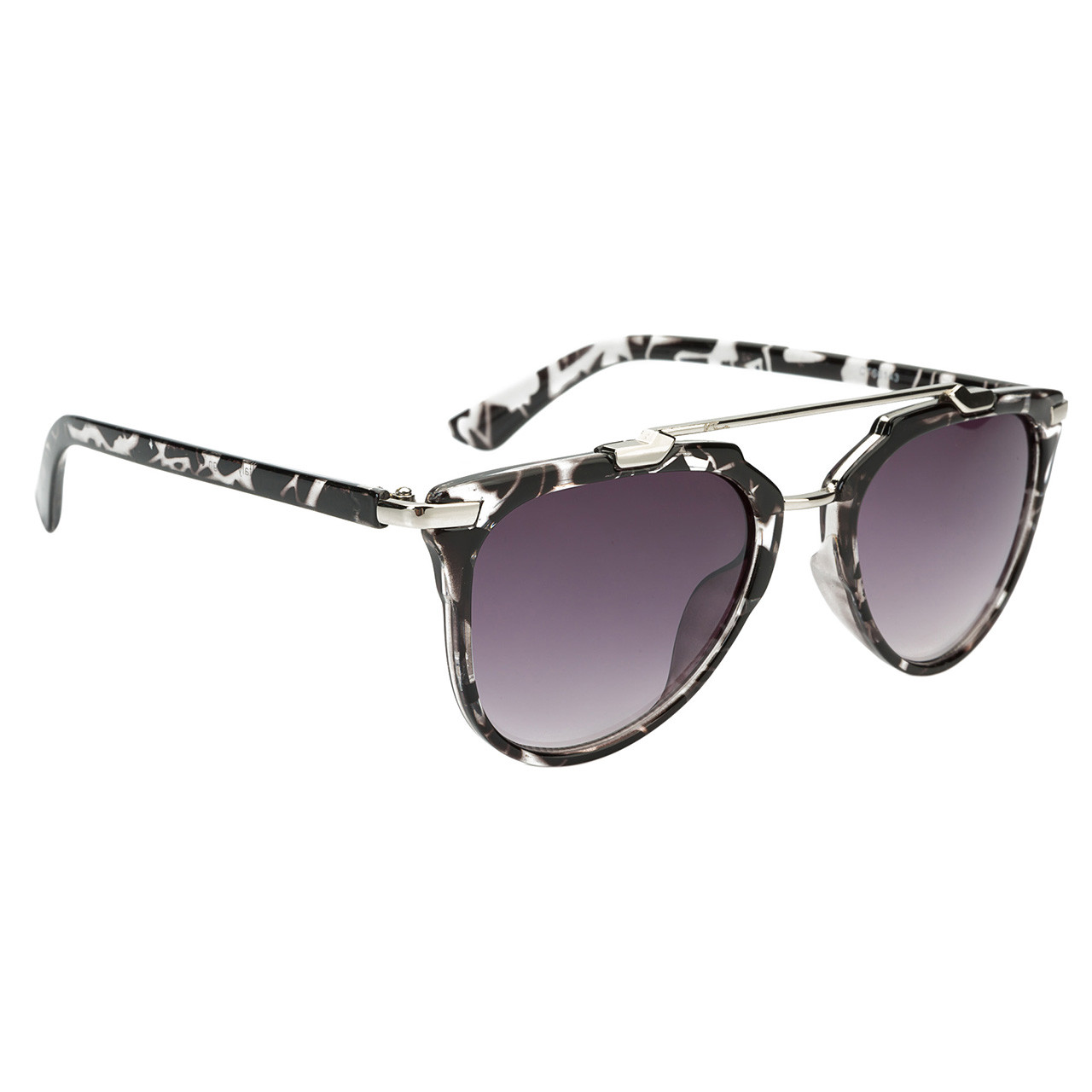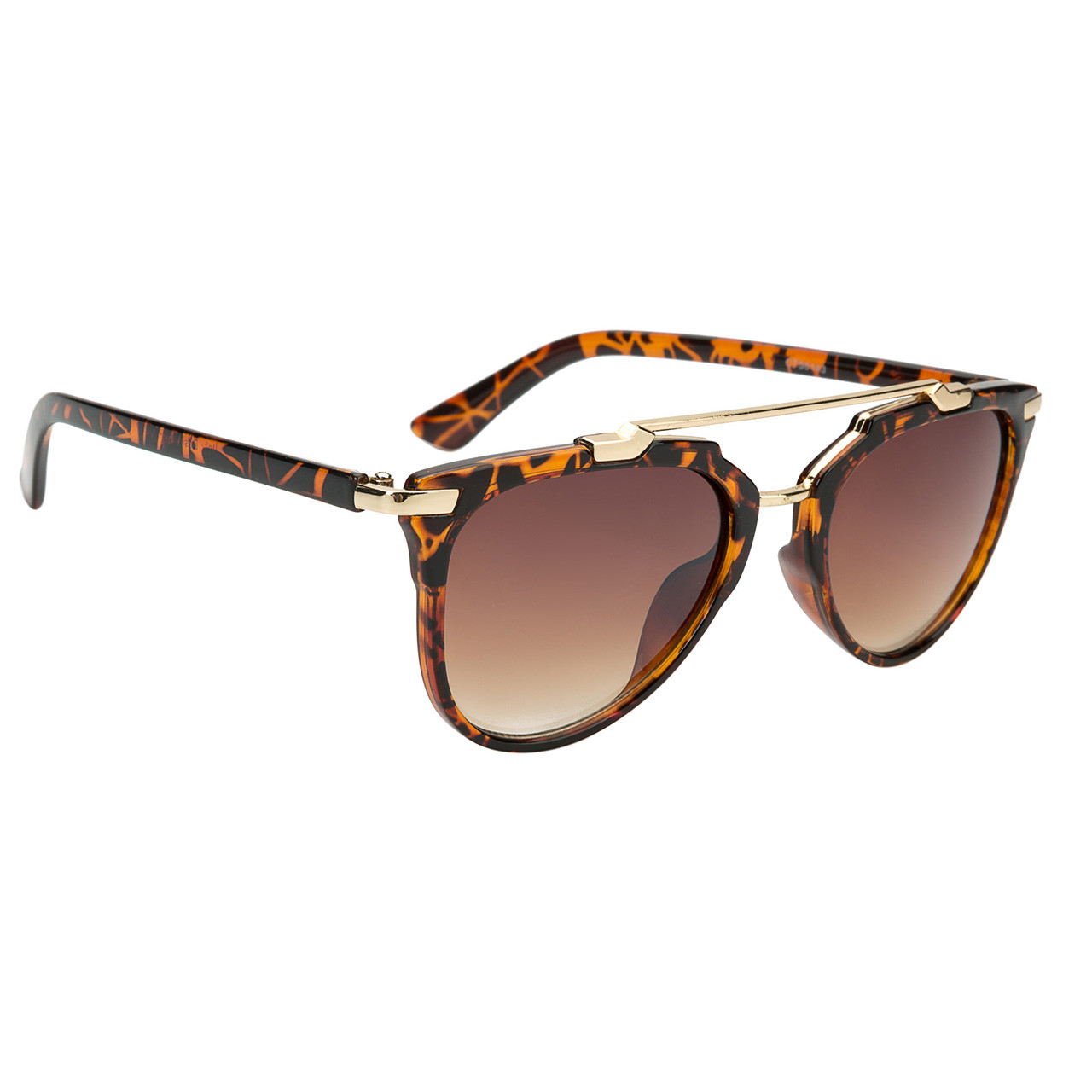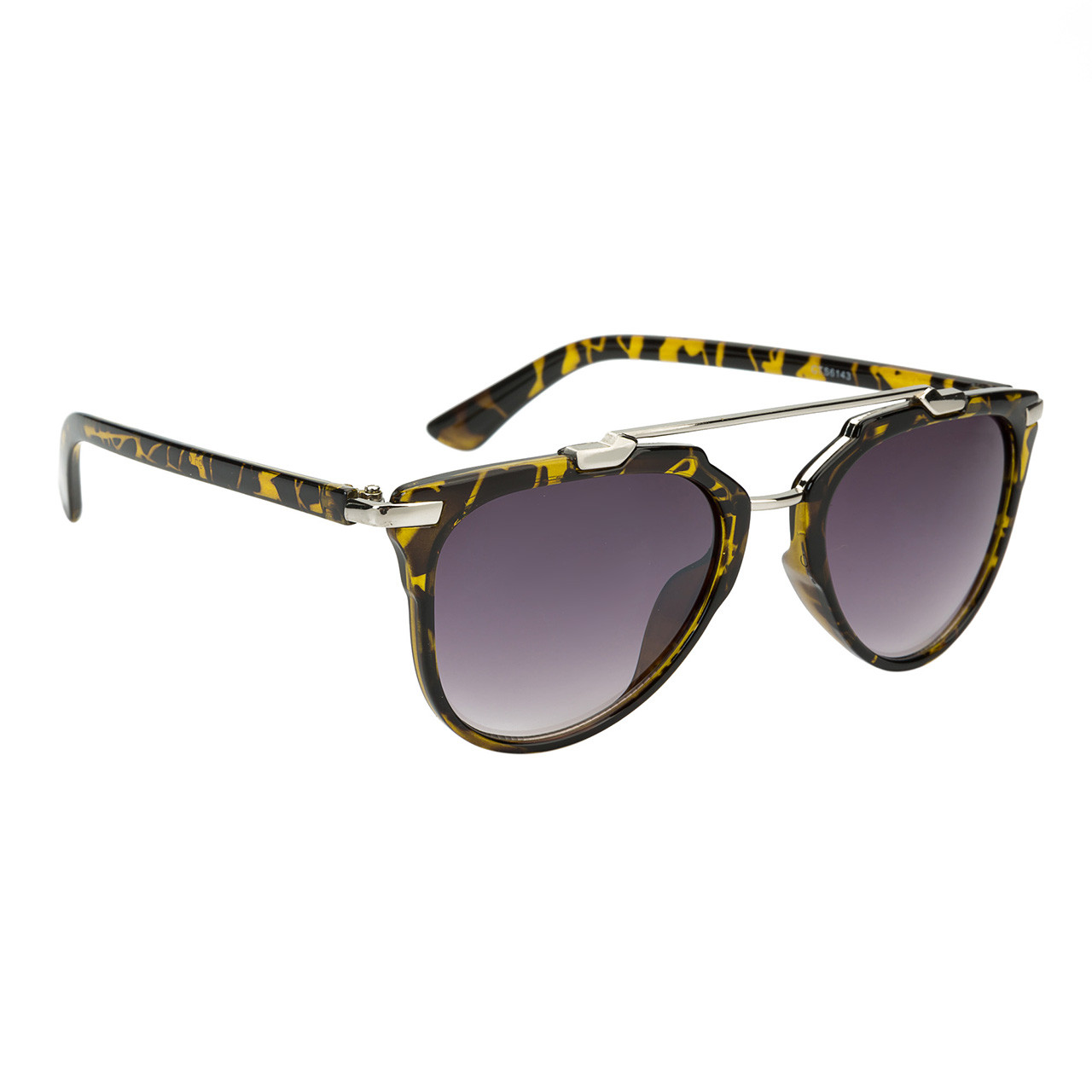 Stylish women’s retro sunglasses with assorted frame colors featuring an animal like print and a gloss black frame as well. This model is a plastic & metal frame combination.